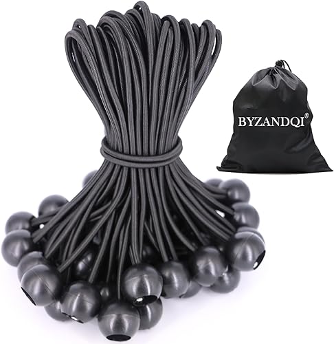 BYZANDQI Spanngummis mit Kugel 50 Stück, Zeltgummis mit Kugel 10 cm, Planenspanner Gummispanner Expanderschlingen Gummischlaufen für Planen Zelt Banner Netz Pavillions