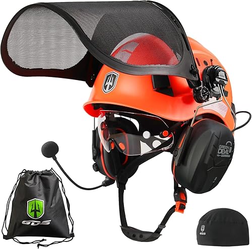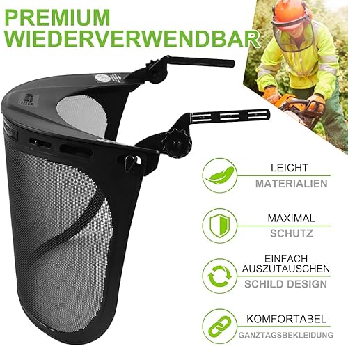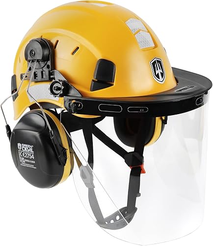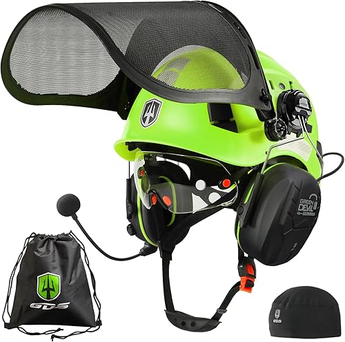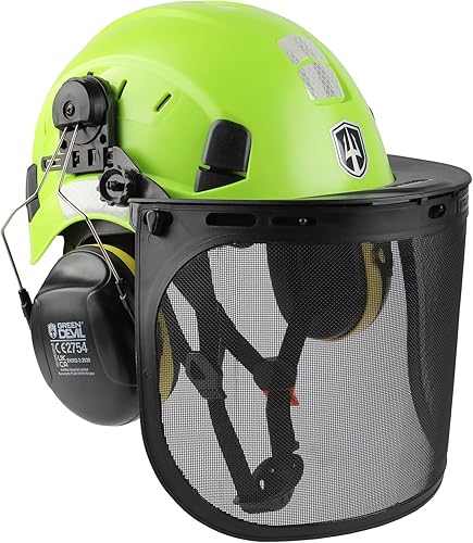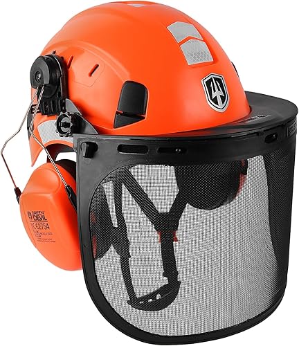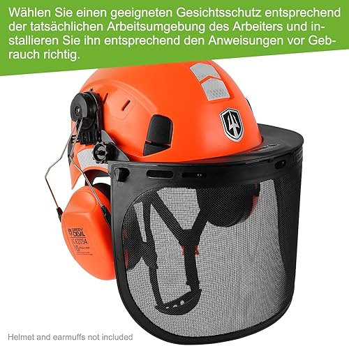 GREEN DEVIL Kettensägen-Schutzhelm Forstschutzhelm Sicherheitshelm mit Gehörschutz Ohrenschützer und Gesichtsschutz Visier 3 in1 Helmset Schlagfeste Bequeme Belüftung Arbeitshelm EN397 & EN 352-3