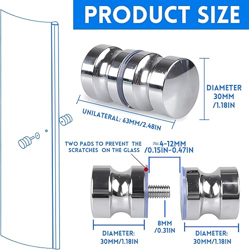 CAILI 2 Stück Türknopf Duschtürknopf Türknauf Dusche Griff Knopf Dusche-Griff Türklinken Türgriff aus Edelstahl für Duschtür Glastüren