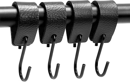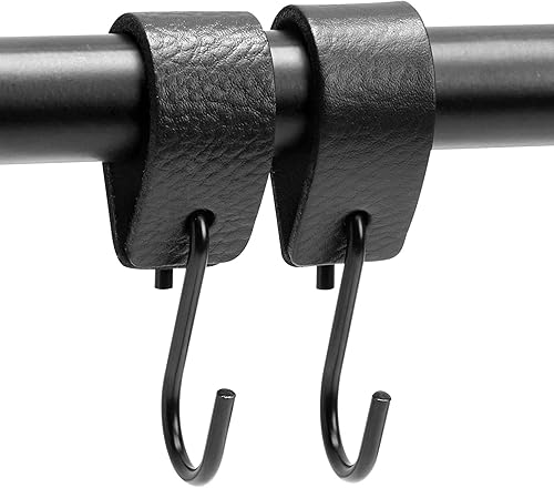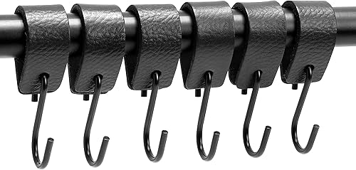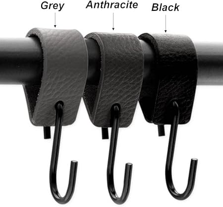 Brute Strength - S Haken Mit Lederschlaufe - Schwarz - 6X - 12,5 x 2,5 cm - Kleiderhaken Garderobenhaken Fleischerhaken Leder