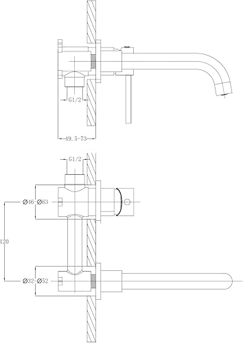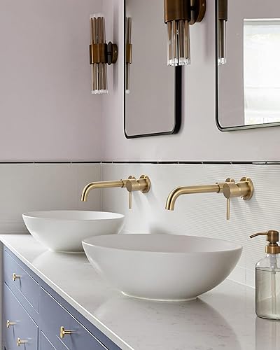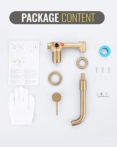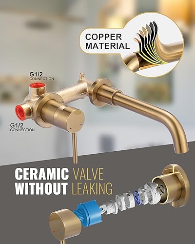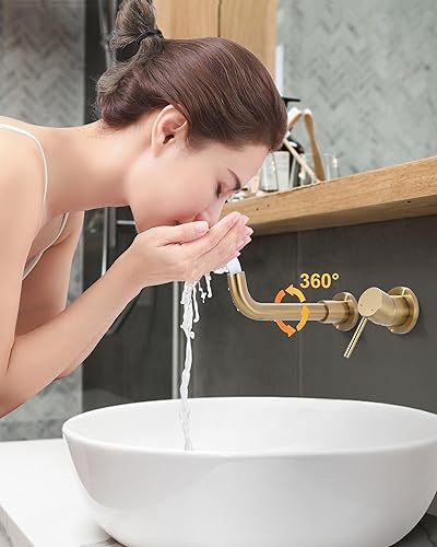 iVIGA Waschtischarmatur, 360° schwenkbar Wandmontage Wasserhahn Bad Unterputz Armatur Waschbecken aus Kupfer mit Keramik Kartusche, Golden