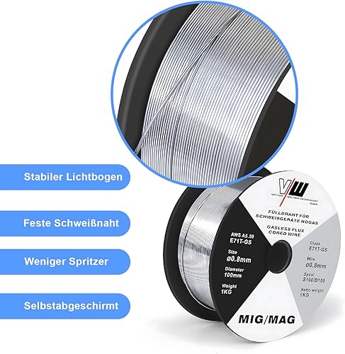 MIG MAG Schweißdraht E71T-GS, 3 Rollen Fülldraht, Drahtrolle D100/S100 je 1kg, 0.8mm Durchmesser, VECTOR