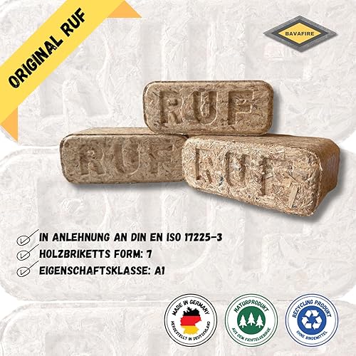 BAVAFIRE 30kg Reflamm Holzbriketts - Original RUF Briketts - 3x10 kg Gebinde - nachhaltiges und ressourcenschonendes Heizen in Kamin & Ofen - rein natürlich ohne Bindemittel