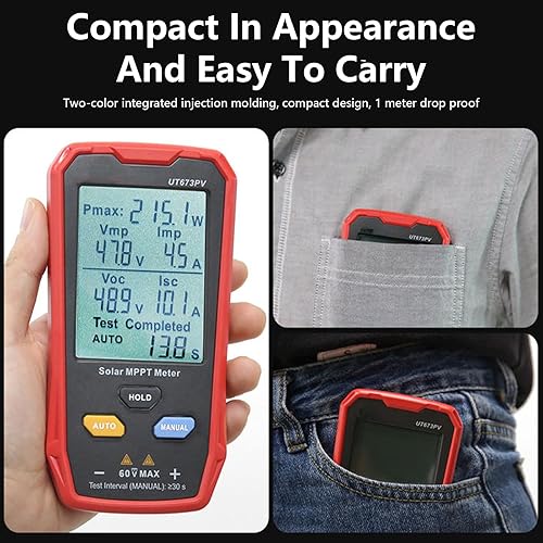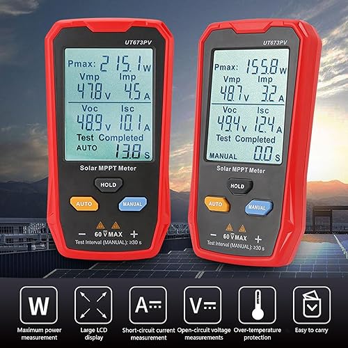 Solarpanel Tester, UT673PV 800W Photovoltaik Multimeter Solar MPPT Messgerät mit Großem Ultraklarem LCD Smart MPPT Leerlaufspannungs Fehlerbehebung Datentest für Photovoltaikmodule