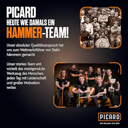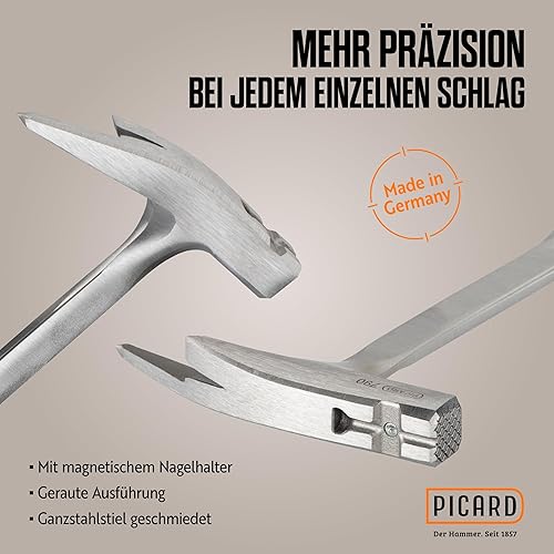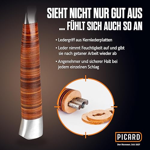PICARD Ganzstahl-Latthammer Nr. 790 geraut | Magnetischer Nagelhalter | Ledergriff aus verwindungssicherem Kernleder | Gewicht: 907g | Ideal für Dachdecker & Schreiner | Made in Germany seit 1857