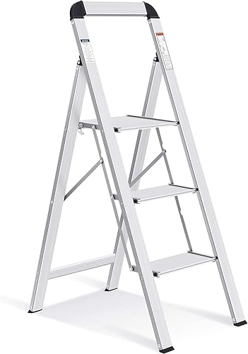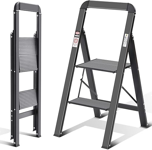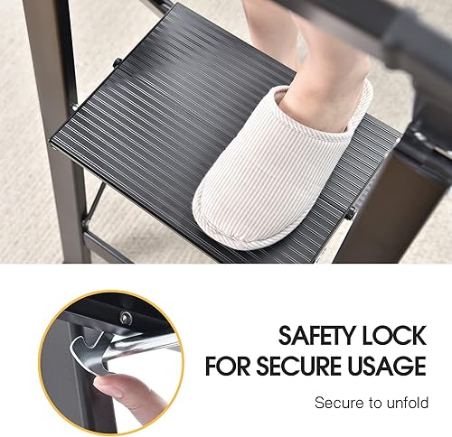 KINGRACK Stufenleiter, 5 Stufen, klappbare Stufenleiter mit Handlauf, rutschfeste Haushaltsleiter mit Klappsicherung, Aluminium Tritthocker, maximale Belastung 150 kg