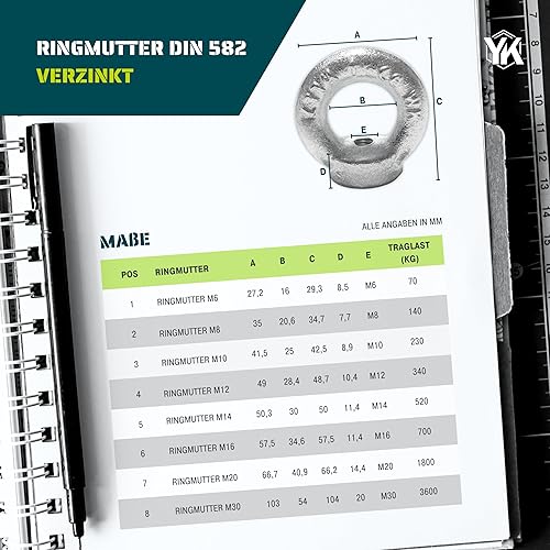 Yourkon Ringmutter | M6 bis M30 | DIN 582 | gal. verzinkt | Ring & Kranöse | Augemutter (25, M16)