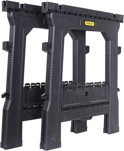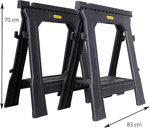 STANLEY Arbeitsbock höhenverstellbar Unterstellbock Paar (paarweise, flach zusammenlegbar, fester Stand durch Gummi-Füße, 450 kg Belastbarkeit, inkl. Kabelhalterung) STST1-70713