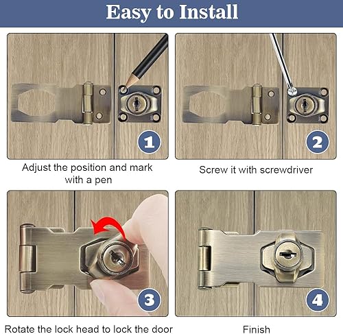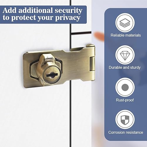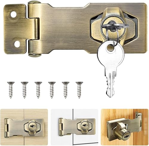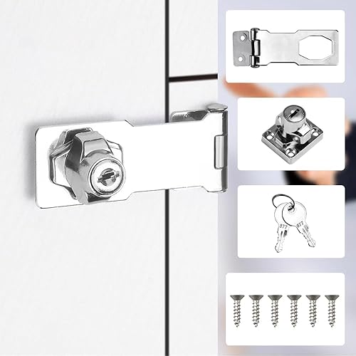 ADERTOS Türschloss Sicherheitsüberfalle 4 Zoll Abschließbar Überfalle mit Schloss Keyed Hasp Lock Vorrichtung Hasp Lock Silber Schublade Schrank Locks für Türen Haustür, Garagentor,Fenster