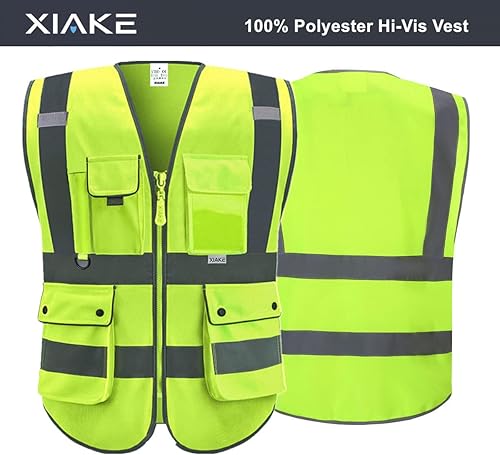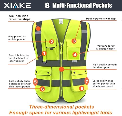 XIAKE RV120528 Reflektierende Sicherheitsweste mit hoher Sichtbarkeit mit 8 Taschen