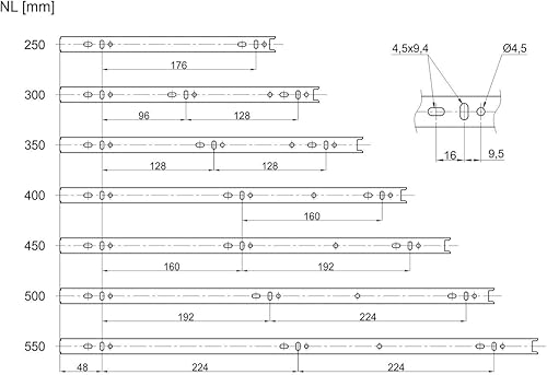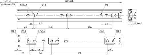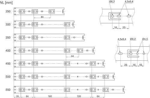 JUNKER 1 Paar (2 Stück) Vollauszüge KV1-25-H35-L400-NF Höhe 35 / Länge 400 mm/mit Tragkraft 25 Kg