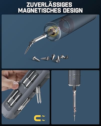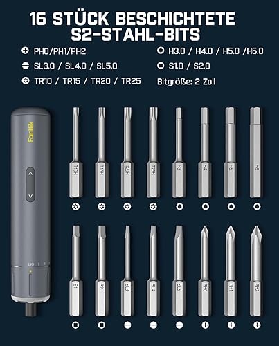Fanttik S1 Pro 3.7V Magnetische Electric Screwdriver, Leistungsstarkes-Schraubendreher-Set mit 16 Bits, Einstellbare 3 Drehmomente bis zu 6 Nm, 2000-mAh-Akku, Geeignet für die Möbel/Computerreparatur