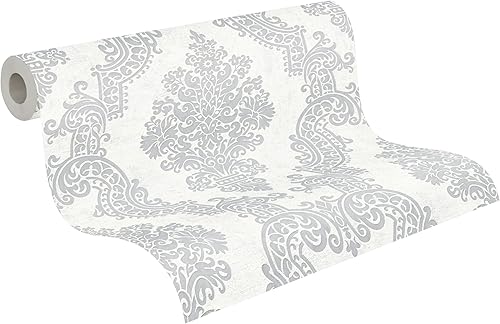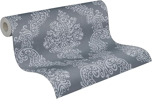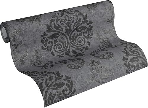 A.S. Création Vliestapete Memory Tapete neo barock glamourös klassisch 10,05 m x 0,53 m grau metallic schwarz Made in Germany 953723 95372-3
