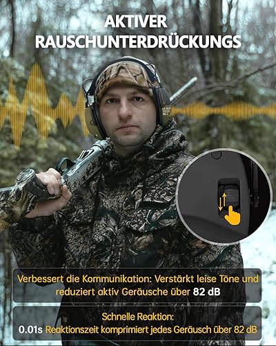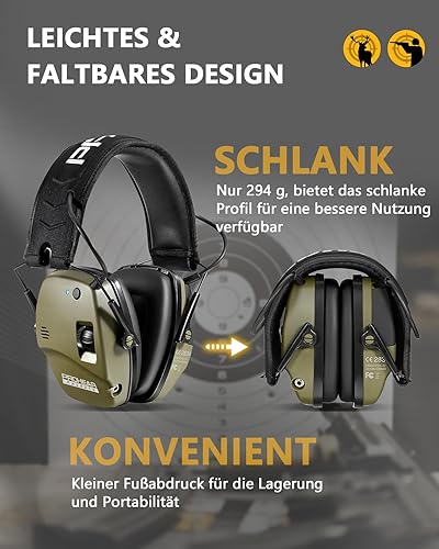 PROHEAR 030 Elektronischer Schiessen Gehörschutz mit Bluetooth, Schießstand Gehörschutzer, Aktiver Ohrenschützer Lärmminderung Klangverstärkung für Jagd, NRR22dB SNR 27dB - Grün