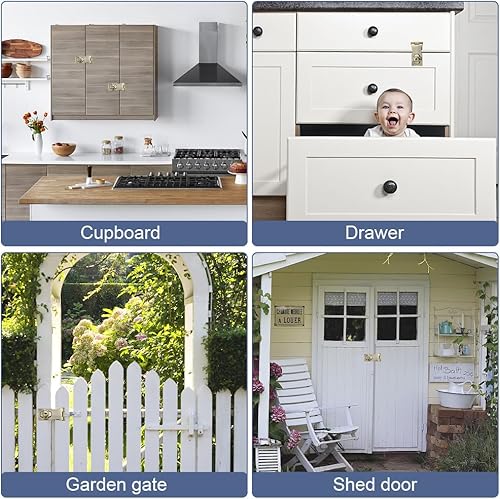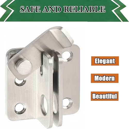 ZiYuya Klappriegel, Torriegel, Sicherheitsriegel, Verriegelung für Scheune, Schrank, Garten, Badezimmer, Garage, Fenster, Schiebetür, Schuppen, Schloss (Silber – rechts offen, L 62 x 56 mm)