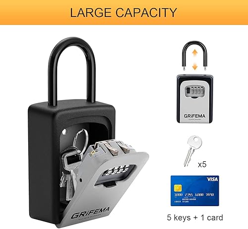 GRIFEMA Schlüsseltresor mit Bügel Wetterfest - Schlüsselsafe 4 Stellig, Schlüsselbox mit Code, Schlüsselkasten mit Zahlencode Robust, Sicher, Schlüsselversteck für Schlüssel Türkarte, Zinklegierung