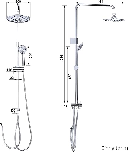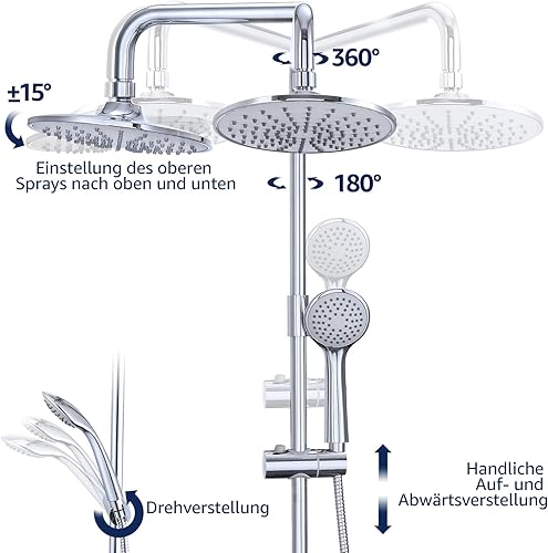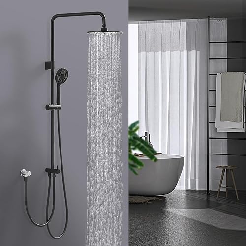 HOMELODY Regendusche Duschsystem ohne Armatur, Schwarz Handbrause mit 4 Funktionen, Edelstahl Duschset mit Kopfbrause Rund, Duschstange SUS304