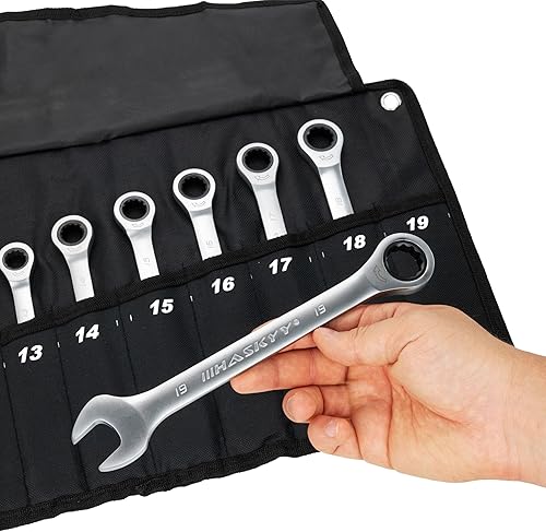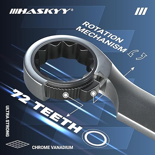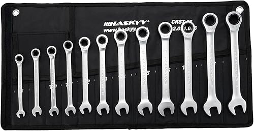 HASKYY Ratschenschlüssel Set 8-19mm Ringmaulschlüssel Gabelschlüssel 12 tlg. Metrisch Ratschen-Schlüssel Satz 72 Zähne Feinverzahnt Ring Maulschlüssel