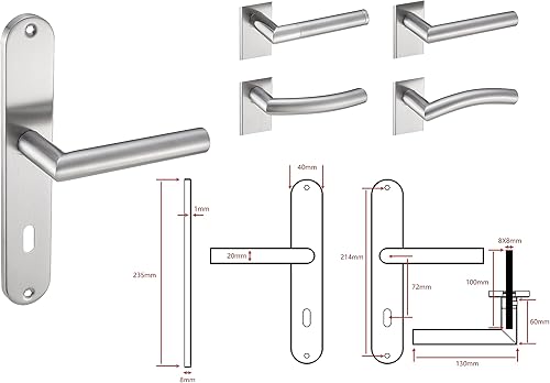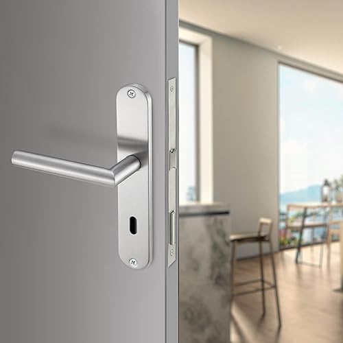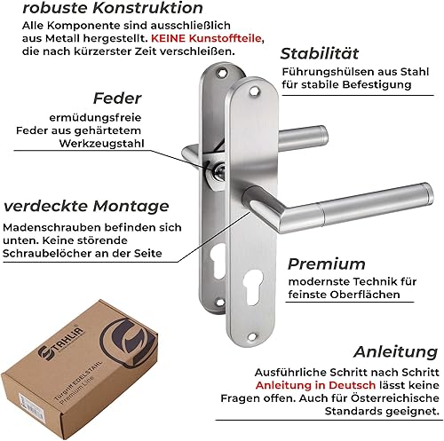 Stahlia Langschild Drückergarnitur Edelstahl gebürstet EMILIA | BB - Buntbart | Türbeschlag für Innentüren, Zimmertüren, Eingangstüren für Türstärke 20 – 47 mm | Befestigungsmaterial