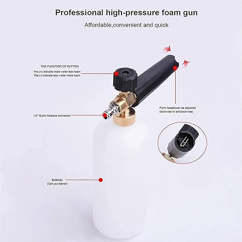 Stone Banks Hochdruckreiniger Schaumlanze Pistole mit 5 Sprüh Düsen, 1L Einstellbarer 1/4' Schnellverschluss Schnee Schaumkanone Flasche Seifenspender zum Autowäsche, Reinigung