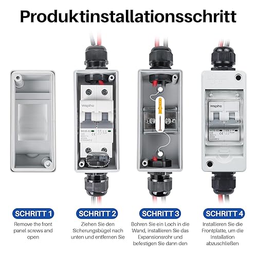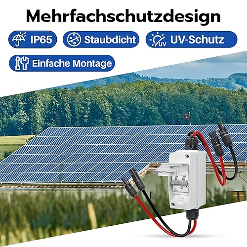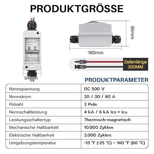 WSPIHO PV Sicherungsautomat 2 Polig für PV Anlage,IP65 Wasserdicht Gehäuse Verteilerkästen,DC Trennschalter Leitungsschutzschalter mit Photovoltaik Kabel (30A DC500V)