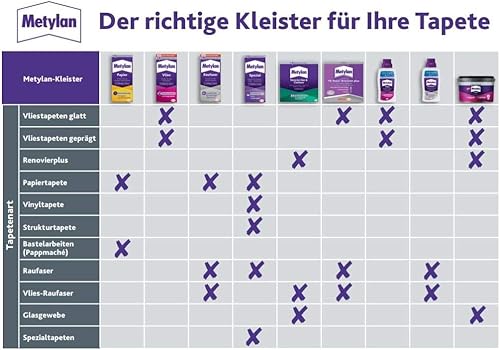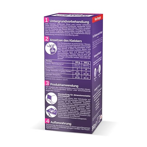 Metylan Vlies, Tapetenkleister für Vliestapeten mit glatter oder strukturierter Rückseite, einfach zu verwendender Tapetenkleister, Kleister mit hoher Ergiebigkeit, 3x360g