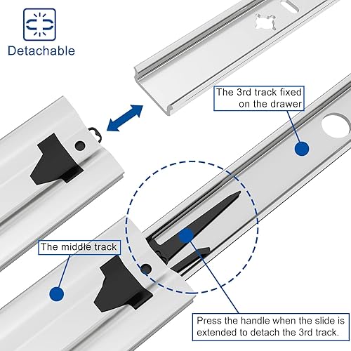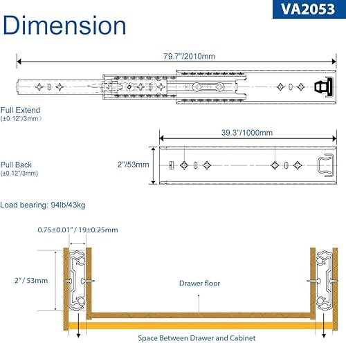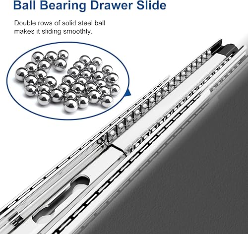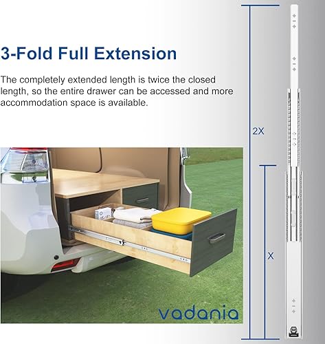 VADANIA Schwerlast Schubladenschienen 500mm, 120kg Tragfähigkeit mit Kugelgelagerten Schubladenauszug, 3-teiliger Vollauszug, Seitliche Montage VA2053 1 Paar