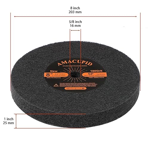 AmaCupid Polierscheibe aus gebürsteter Nylonfaser, 200 mm, Härte 5P. Geeignet für Tischschleifer und Polierer. Polieren weicher Materialien wie Kupfer und Aluminium. 16 mm Dorn