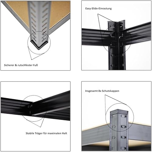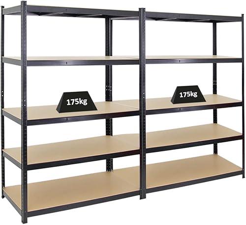 PROREGAL Mega Deal 2X Schwerlastregal Taurus Schwarz 180x90x60cm mit Fachlast 175kg Kellerregal, Steckregal, Garagenregal, Lagerregal
