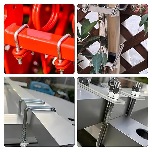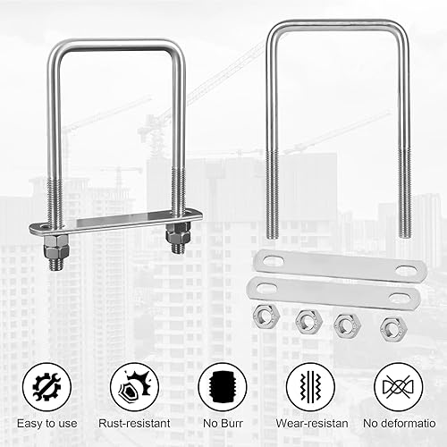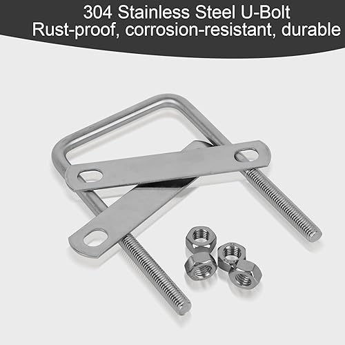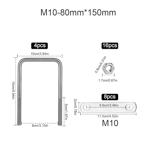 RANJIMA 4 Stück Bügelschraube M10 80x150mm U Schrauben, Quadratisch Edelstahl U Bügel mit Gewinde, U Bolzen mit 8 Muttern und 8 Rahmenplatte für Rohr Befestigung Auto Schiffen Abschleppen