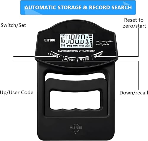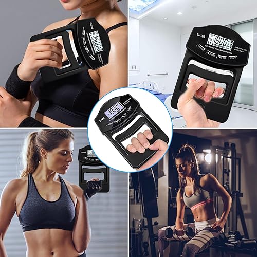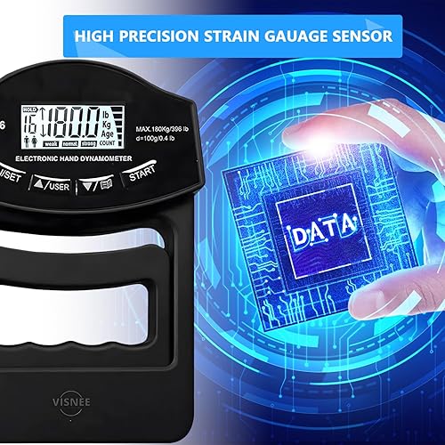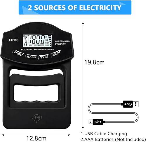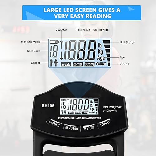 Kensbro Digitaler Handkraftmessgerät 396lb/180Kg Elektronische Griffkraft Messgerät Großer LED-Bildschirm Hand Dynamometer mit USB-Ladekabel, Intelligent und einfühlsam(Schwarz)