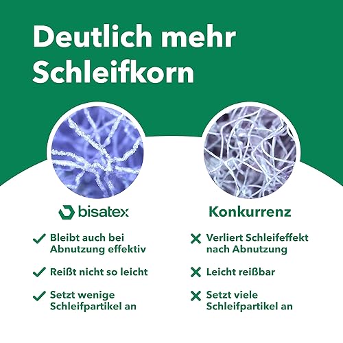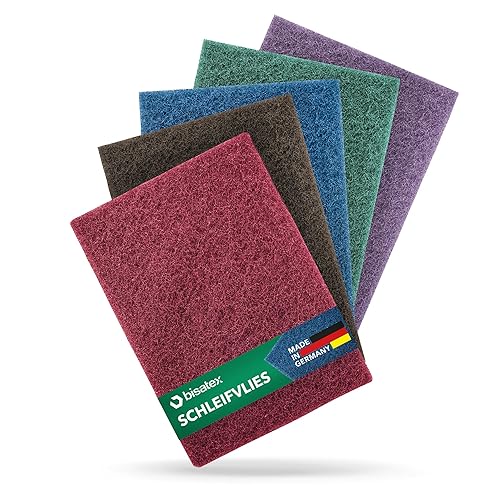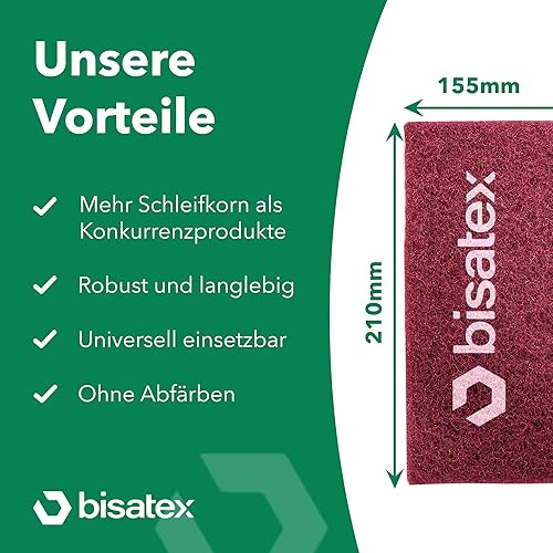 BISATEX® Schleifvlies 5er Set verschiedene Körnungen P100-800 - Langlebige & zuschneidabre Schleifpads in 155 x 210 mm - Vlies zum Abschleifen von Holz, Metall & Kunststoff - 100% Made in Germany