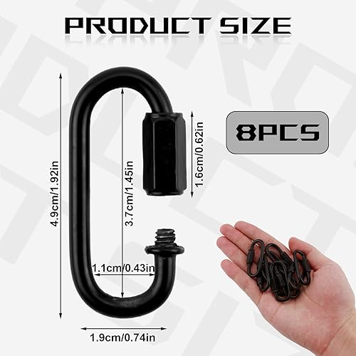 8PCS Karabiner Schwarz, Schnellglieder Kettenglieder Quick Link Karabinerverschluss Schraubverbinder Kettenverbinder Schraubverschluss Karabiner Langlebiger Verschlusskarabiner