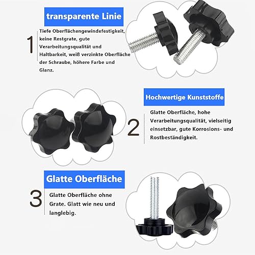 SHULLIN 16 Stück M5 Sternkopfschraube Sterngriffschraube Rändelschraube Sternschraube Sterngriff Schrauben Sterngriff Gewinde Klemmknopf für Maschine Industrie Ausrüstung (M5x12mm)