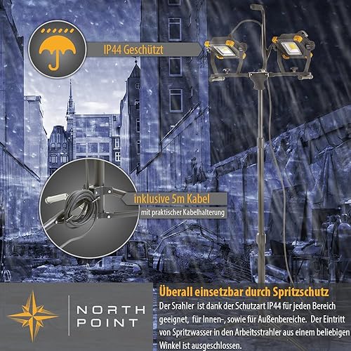 Northpoint LED Baustrahler Arbeitsstrahler Strahler Fluter Stativ 2x50 W Parent (Quick-Release+Steckdose)