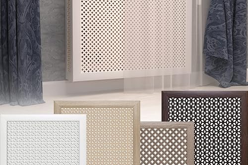 HEXIM Heizkörperverkleidung MDF & HDF - Dekorative Heizkörperabdeckungen in unterschiedlichen Größen & Muster - Heizverkleidung Rippenheizkörper (Frontblende Gloria Eiche Vintage - 150x60cm)