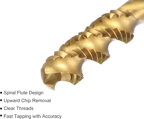 sourcing map Gewindebohrer mit Spiralnut 1/4-20 UNC Schnellarbeitsstahl Titanbeschichteter Maschinengewindebohrer 3 Schneidiges Gewindeschneidwerkzeug H2 Toleranz