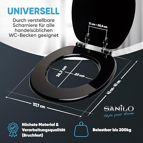 Sanilo WC Sitz mit Absenkautomatik, viele schöne schwarze Toilettendeckel zur Auswahl, hochwertige und stabile Qualität aus Holz (Vip Lounge)