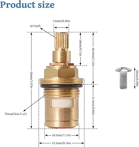 2 Stück Wasserhahn Ventiloberteil 1/2 Zoll, Universal Ventil Oberteil für Zweigriff Armaturen und Ventile Wasserhahn Kartusche Messing für Bad und Küche