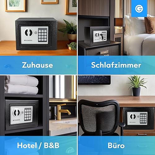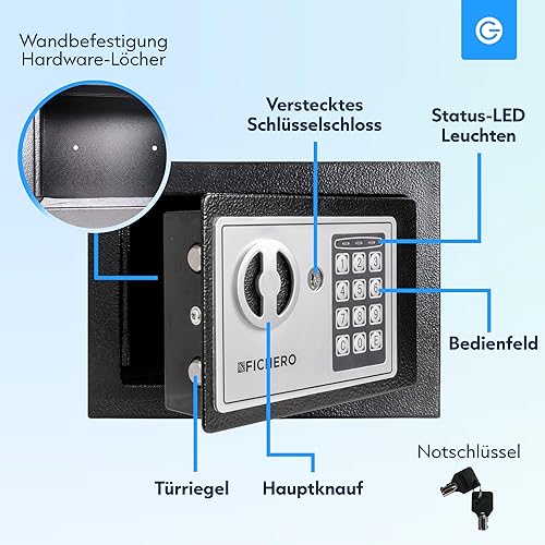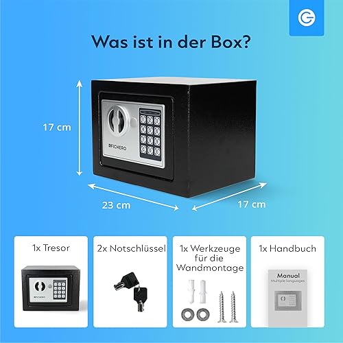 Silvergear® Safe Tresor für Zuhause | Elektronischer Safe Tresor mit 3- bis 8-stelligem Code | Geldtresor aus Stahl mit 2 Schlüsseln und Code für die sichere Aufbewahrung von Geld und Schmuck