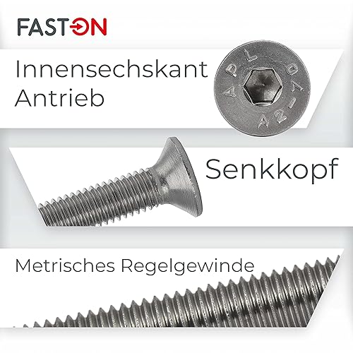 Senkkopfschrauben M6x90 Edelstahl (10 Stück) Innensechskant Edelstahlschrauben DIN 7991 FASTON®