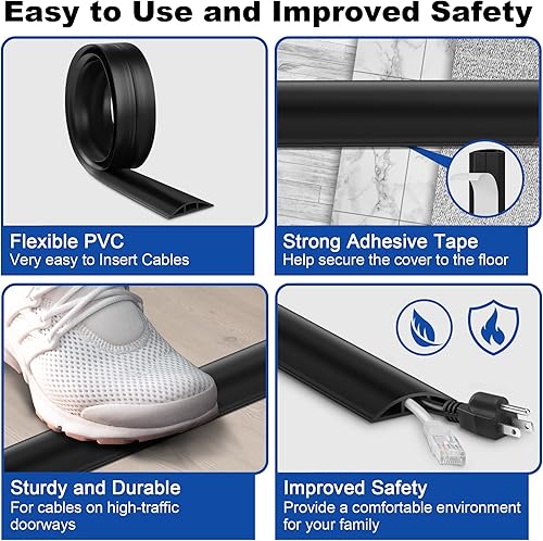 LZEOY 3 m Bodenkabelabdeckung, schwarzer Kabelversteckboden, langlebige Kabelabdeckungen für Drähte auf dem Boden, Kabelbodenabdeckung, Netzkabelabdeckung, Bodenkabelschutz, Verstecken von Kabeln auf