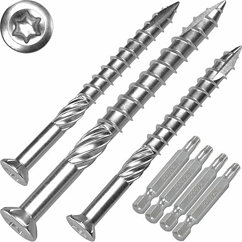 Terrassenschrauben 5 x 80 T-INOX 100 Stück Edelstahl gehärtet C1, Torx 25, inkl. Edelstahl Bit