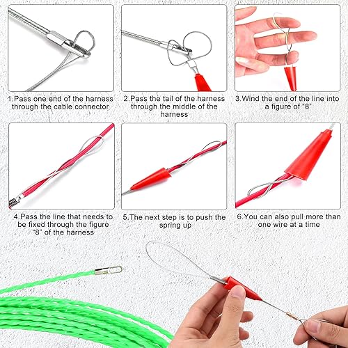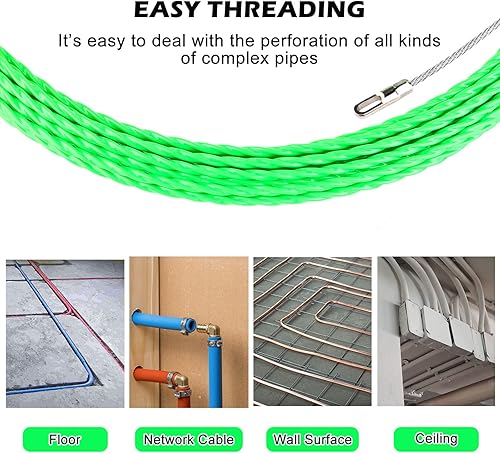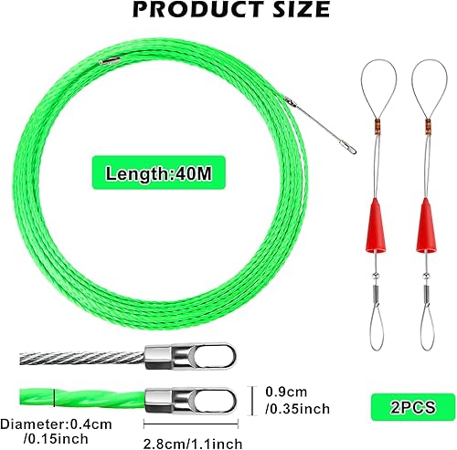 Vegena 40m Kabeleinziehhilfe Einziehfeder Einziehspirale Kabelziehhilfe mit 2 Führungsfeder, Kabel Einzugshilfe Zugdraht für Leerrohre Einziehband Durchmesser 4mm für Einzugsband zur Kabelverlegung