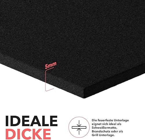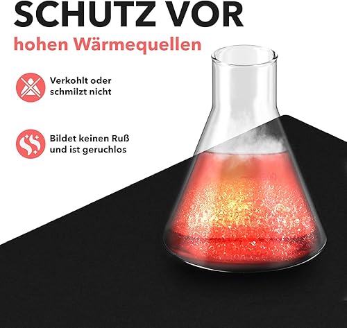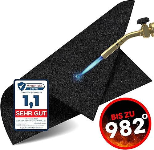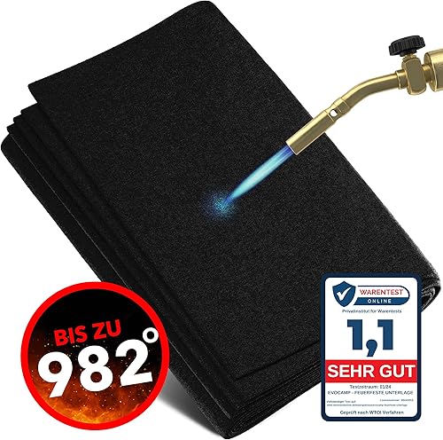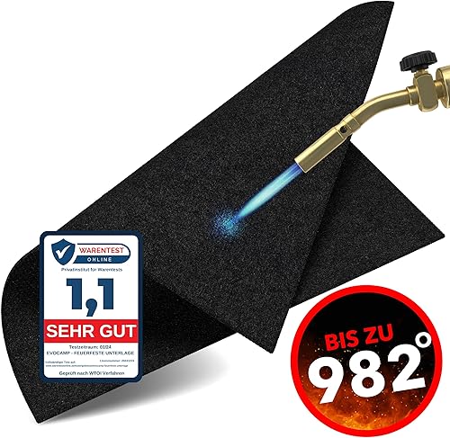 EVOCAMP Feuerfeste Unterlage 50x50 cm - Hitzeschutzmatte hitzebeständig bis 982 °C - Lötmatte als feuerfeste Matte für sicheren Brandschutz - Brandschutzmatte als ideale Feuerschutzmatte - schwarz