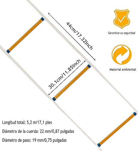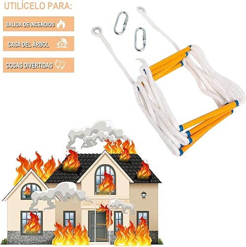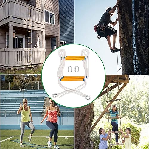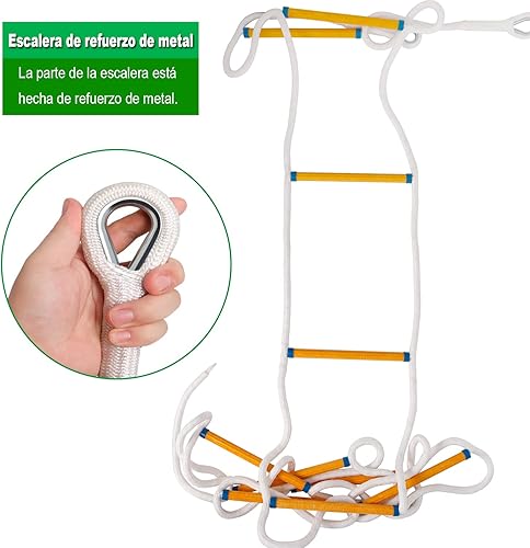 Feuerfeste Rettungsleiter Strickleiter 5M, Feuerfest Sicherheitsleiter, Strickleiter mit 2 Karabiner 16 Fuß für 2 Etage Häuser von Poweka