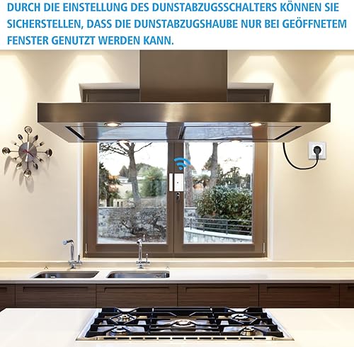 fensterkontaktschalter, fensterkontaktschalter funk, funk abluftsteuerung mit Fenster-Magnetkontakt und Funksteckdose, fensterkontaktschalter dunstabzugshaube mit Funksteckdose 16A für Kamin, Garage