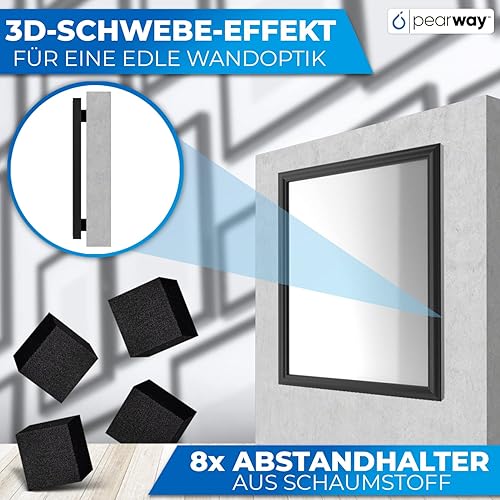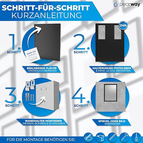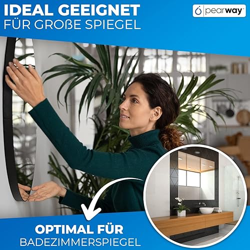 PEARWAY™ Profi Spiegel Aufhängung inkl. Zubehör I maximaler Halt dank 3M Tape I Spiegelhalter I Spiegelaufhänger I Aufhänger für Acrylglasbilder I Spiegelhalterung Wand I Bilderhaken selbstklebend