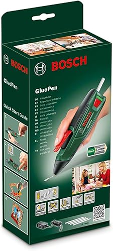 Bosch Akku Heißklebepistole GluePen (Micro USB Ladgerät, 4x Kleber Ultrapower, Karton, 3,6 Volt)