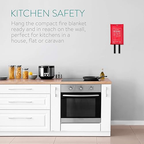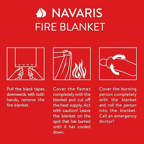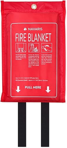 Navaris Löschdecke aus Glasfaser 1,20x1,20m - Feuerlöschdecke für Fettbrände - Brandschutzdecke Küche Auto - Feuerdecke Feuerlöscher Decke